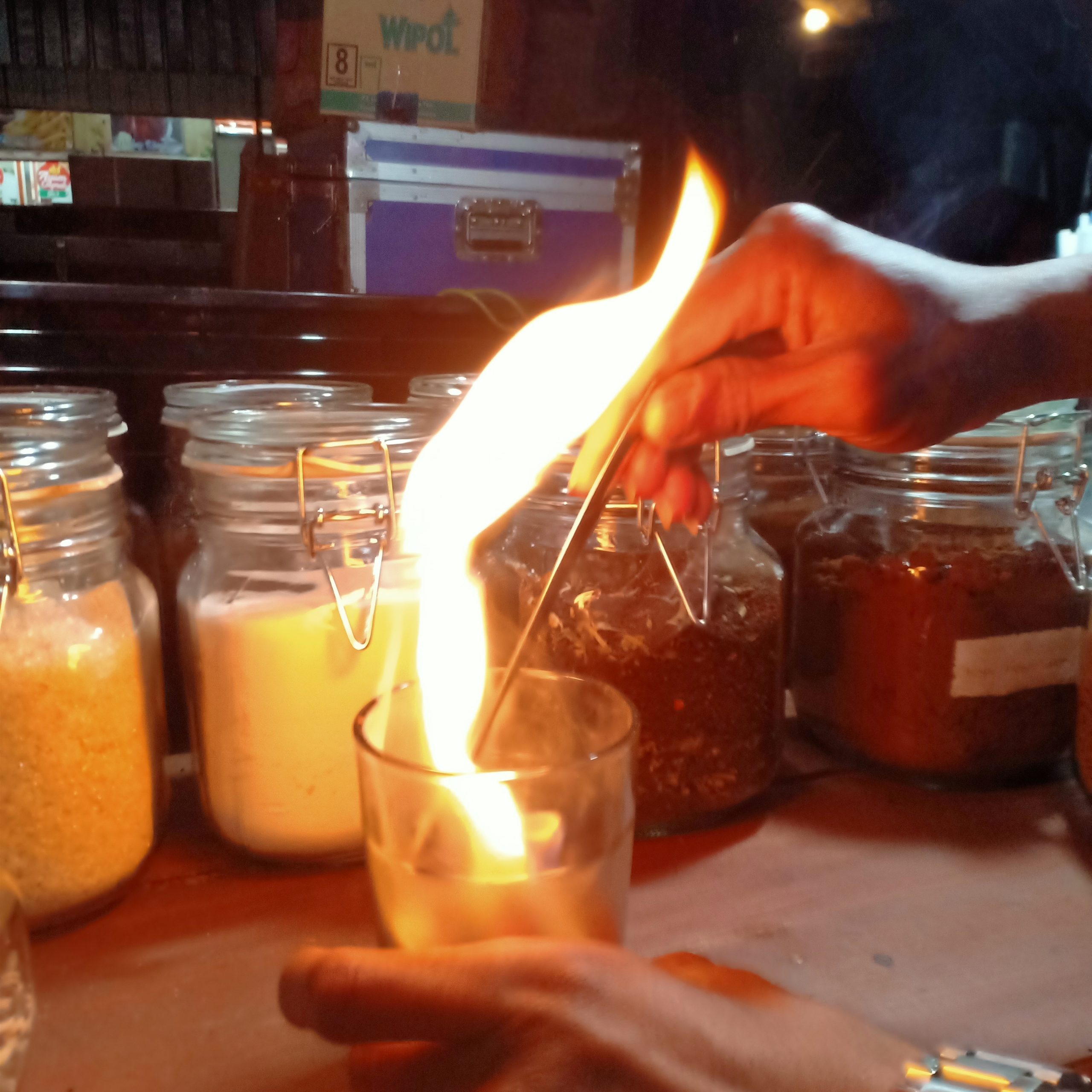 Kopi Geni menawarkan atraksi racikan kopi dengan api langsung dalam gelas, mengusung konsep angkringan tradisional untuk suasana hangat dan akrab, menjadikannya pilihan kuliner unik.
